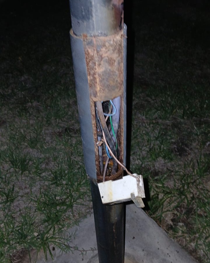 Vándalos provocaron graves daños en las instalaciones eléctricas y dejaron “a oscuras” la plaza de El Nihuil